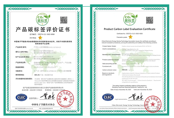 此次碳标签评价表明,z6尊龙中国官方网站电气生产的户外柱上真空断路产品,在碳排放大数据方面按国际通行惯例推进,并具备一定的优势,对促进产品全供应链的温室气体减排,达成“双碳”目标具有积极作用。此外,z6尊龙中国官方网站还获中国电子节能技术协会颁发的低碳产品供应商证书。